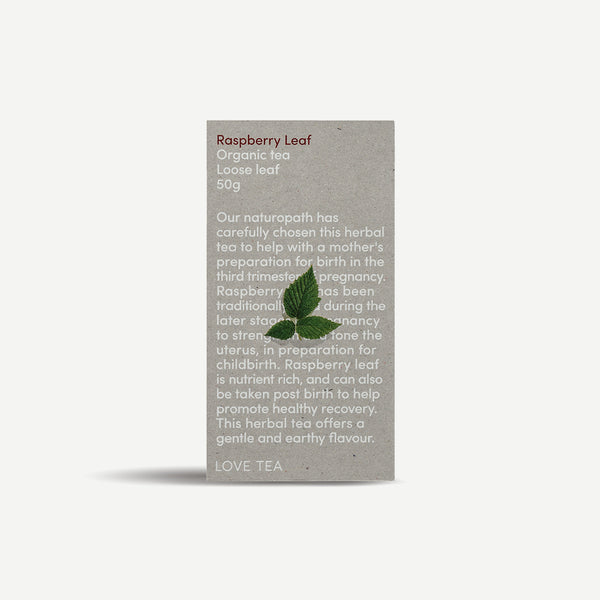 Love Teas Naturopath has carefully chosen this herbal tea to help with a mother’s preparation for birth in the third trimester of pregnancy. Raspberry leaf has been traditionally used during the later stages of pregnancy to strengthen and tone the uterus, in preparation for childbirth. Raspberry leaf is nutrient rich, and can also be taken post birth to help promote healthy recovery. This herbal tea offers a gentle and earthy flavour.