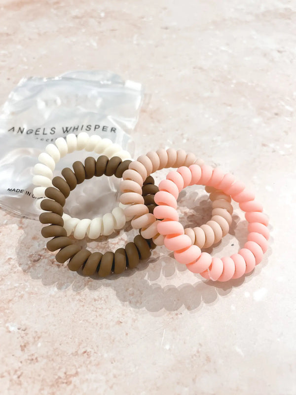 Tie up your hair with no residual kinks with our beautiful 4 pack of Joanne hair coils. These hair coils are available in 4 gorgeous neutral tones of pink, brown, beige and cream and arrive in their own little plastic pouch. Change up your hair coil to suit your outfit!